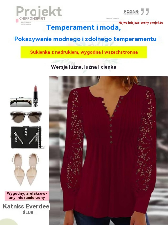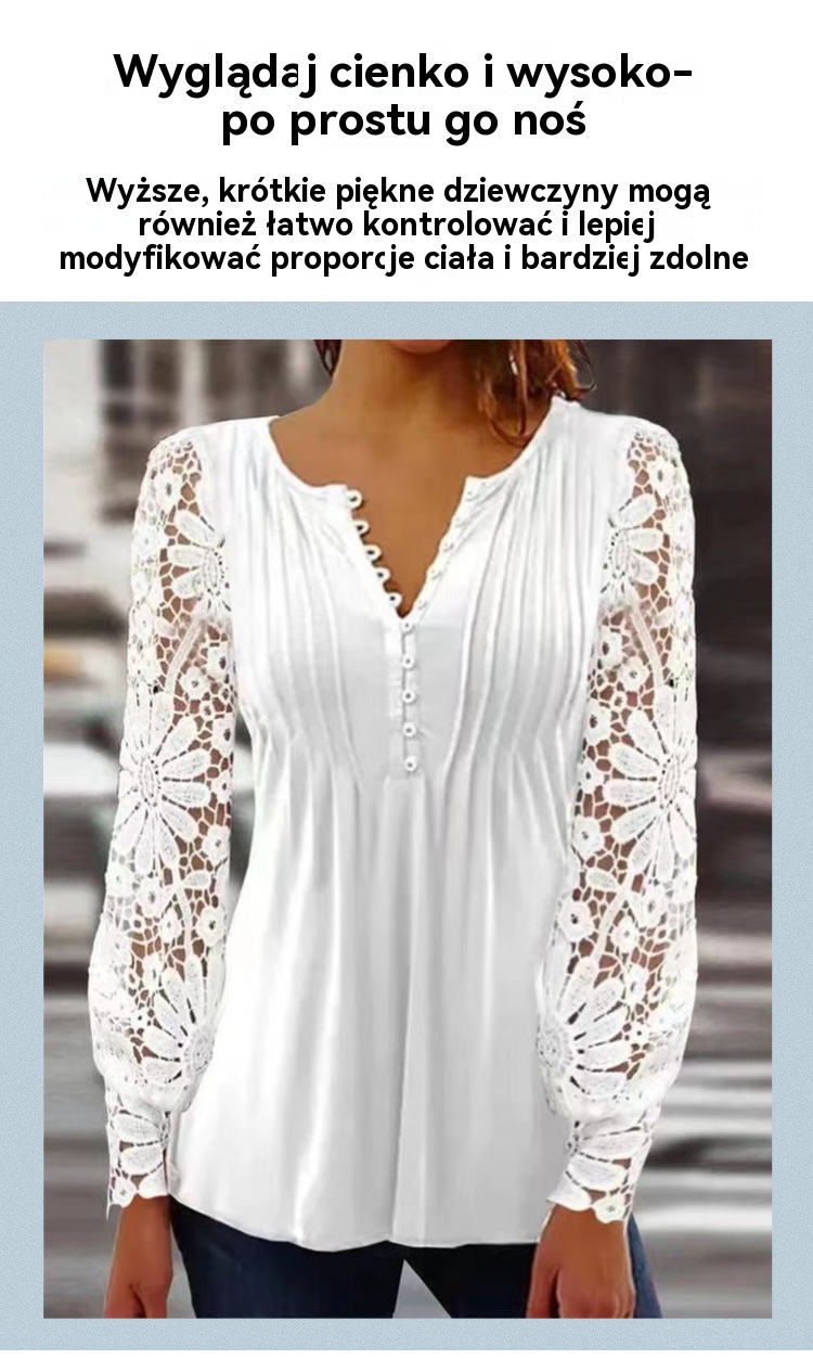 【HOT🎁🔥💥】【S-3XL:40-80KG】Nowy koronkowy V-neck long-sleeved top nie jest łatwy do pill, miękkie i nie przebić skórę, wszechstronny i smukły